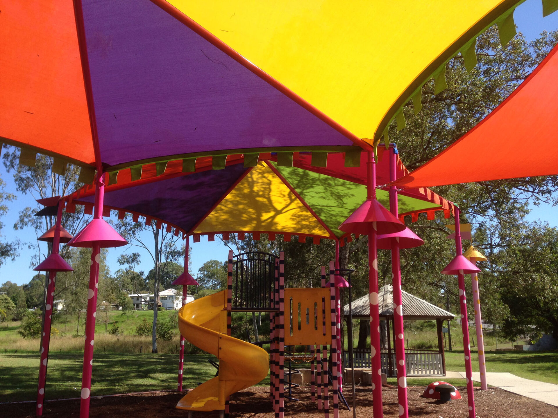 Battye Park was a unique brief presented by the Ipswich City Council. The end goal was to create a carnival themed playground full of bright colours and vibrant elements reflective of those found in a circus or carnival atmosphere. Additionally, in it’s first iteration, there was no provision for shade above the play equipment, resulting in hot and dangerous conditions.