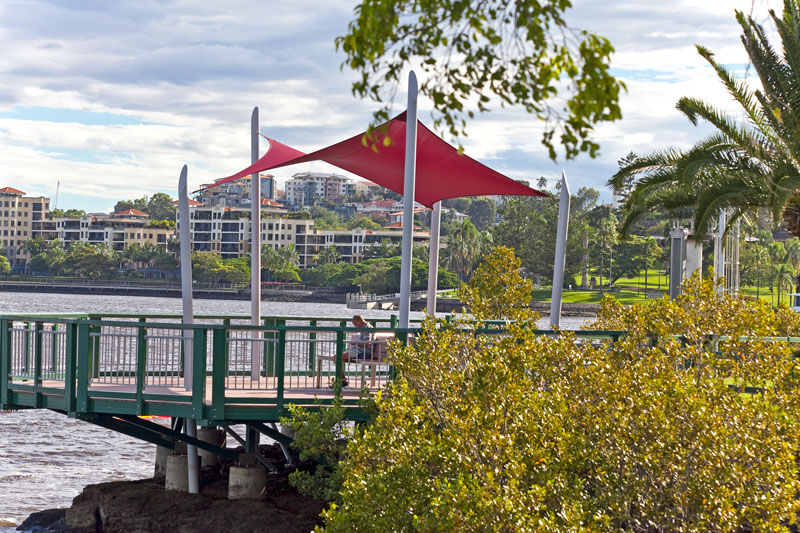 The local government funded a redevelopment of the Cameron Rocks fishing platform which included the provision of shade sails above the new composite wood and fiberglass decking. Being in an exposed area with no shade resulted in a space where fisherman, though wanting to stay a long time, found themselves needing to find refuge elsewhere or leave the area entirely.