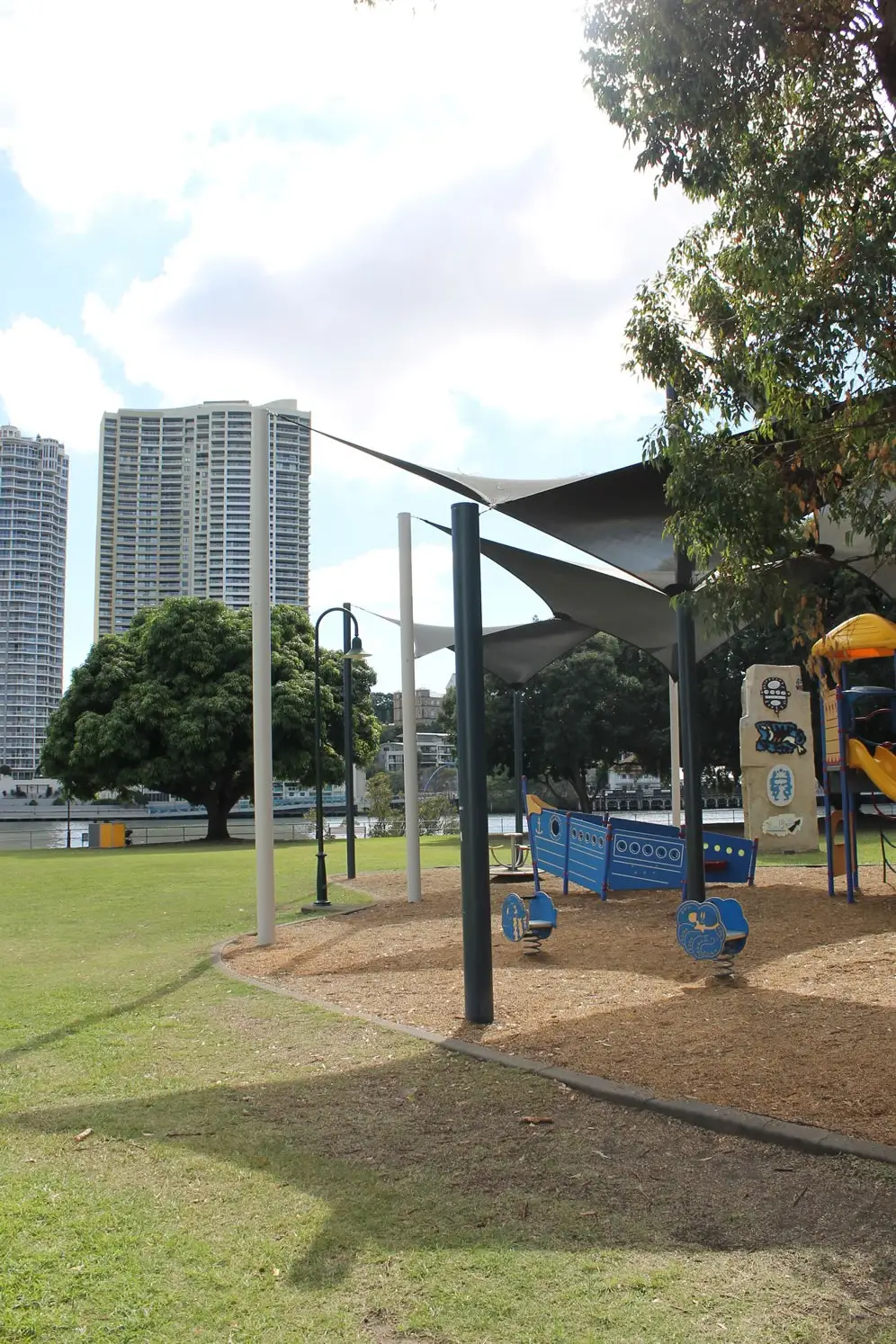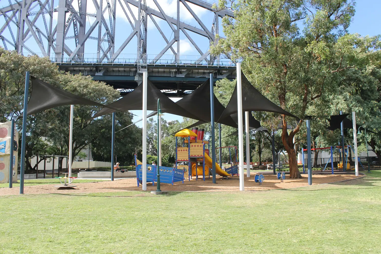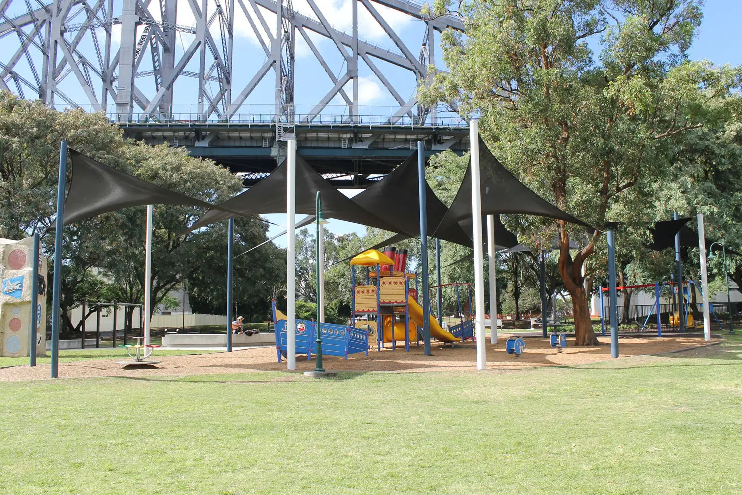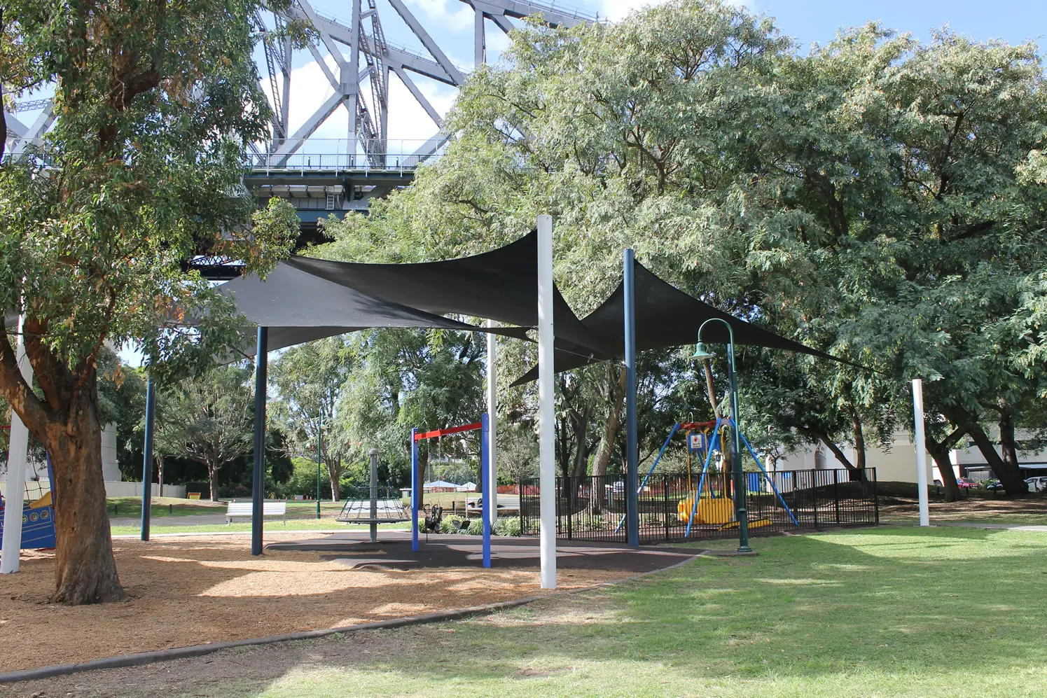 Captain Burke Park in Kangaroo Point is a high-profile park for Brisbane City Council given its proximity to both the CBD and the Story Bridge. It hosts numerous events during the year, from weddings to fireworks displays, however, the playground equipment was void of shade. Brisbane City Council approached Advanced Shade Systems to design and install a new shade solution over this playground and immediate surrounds