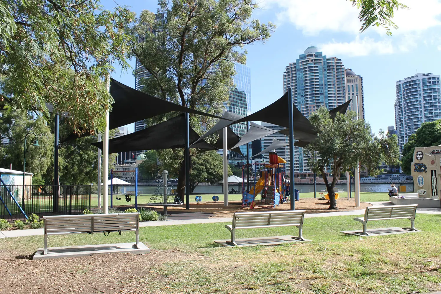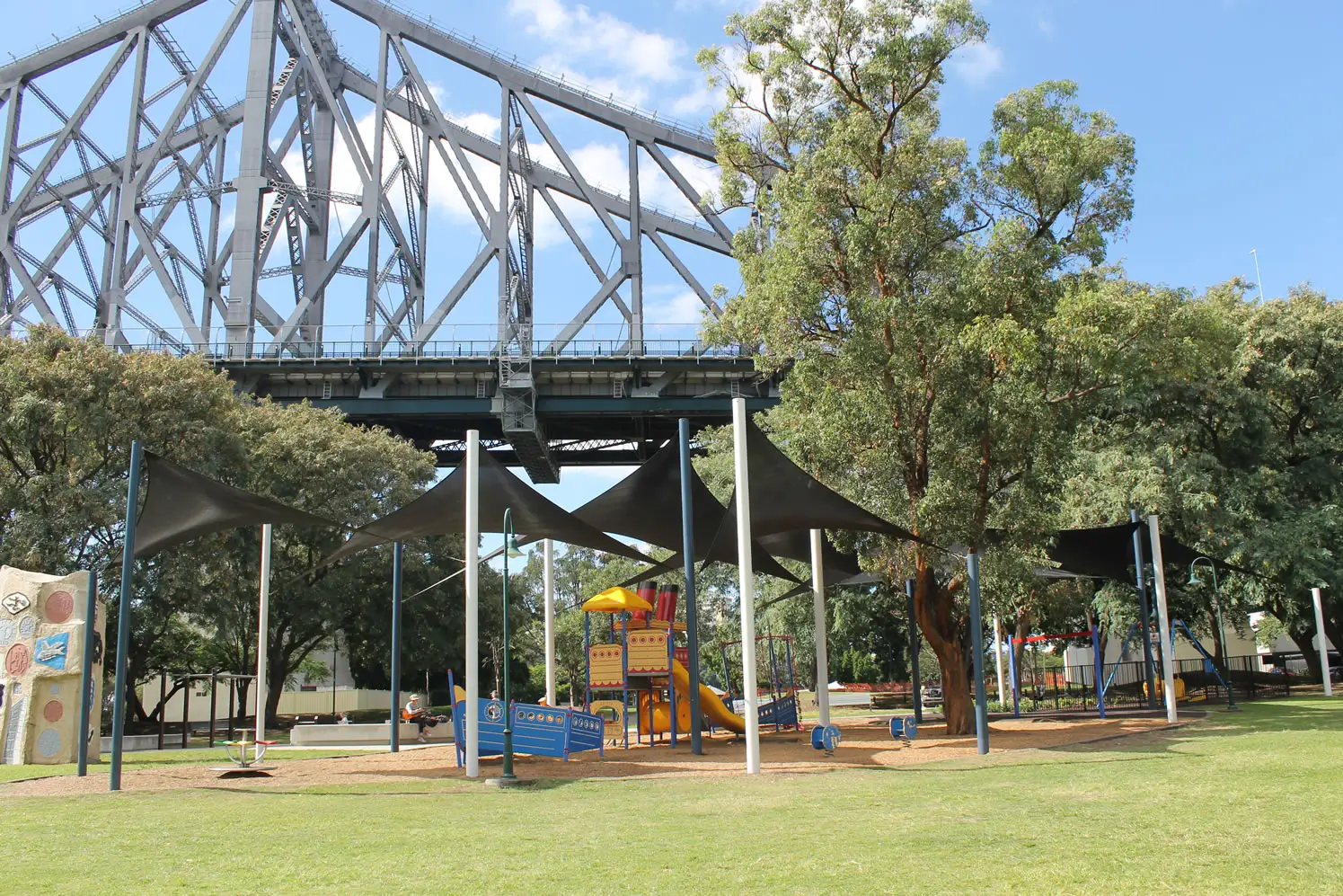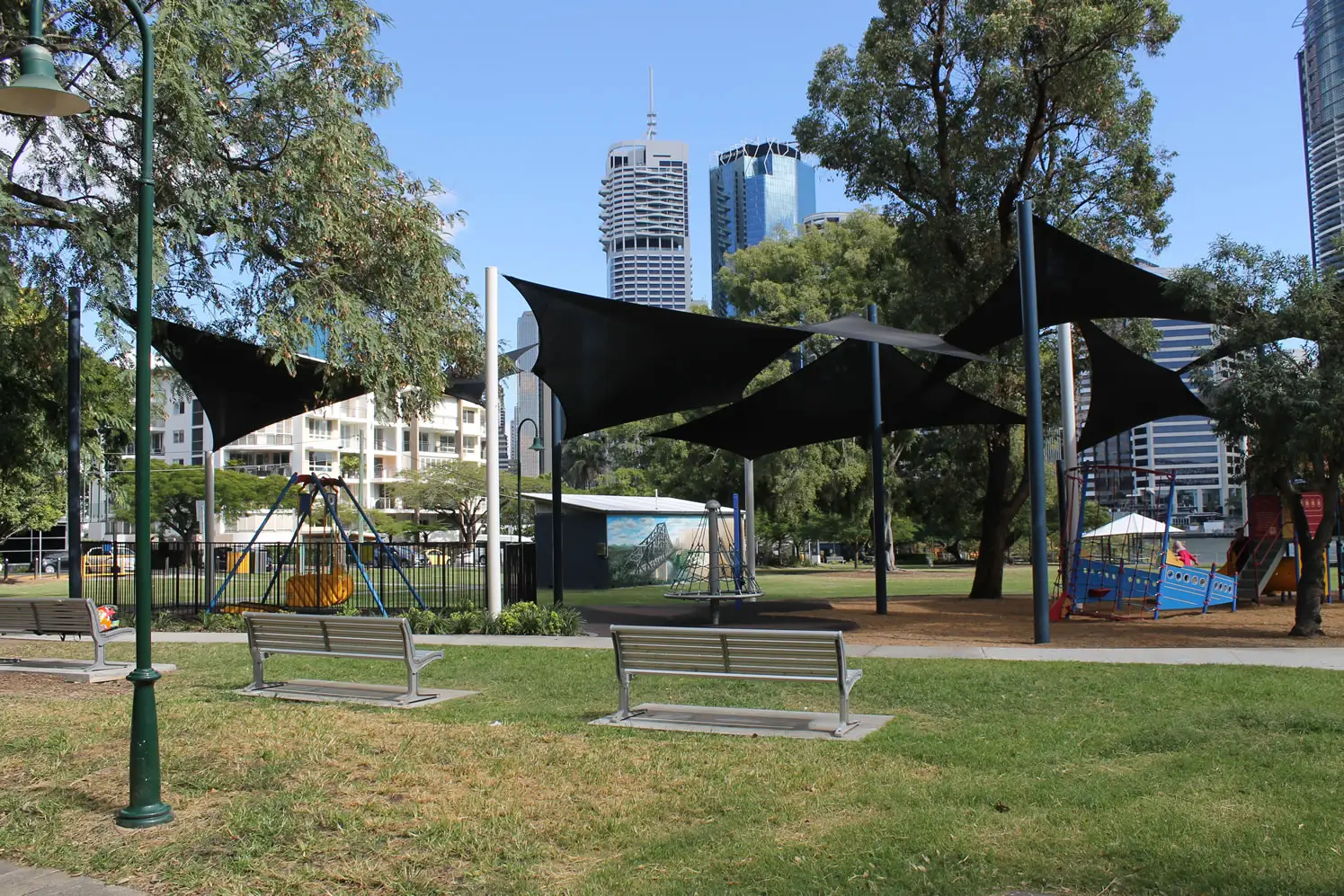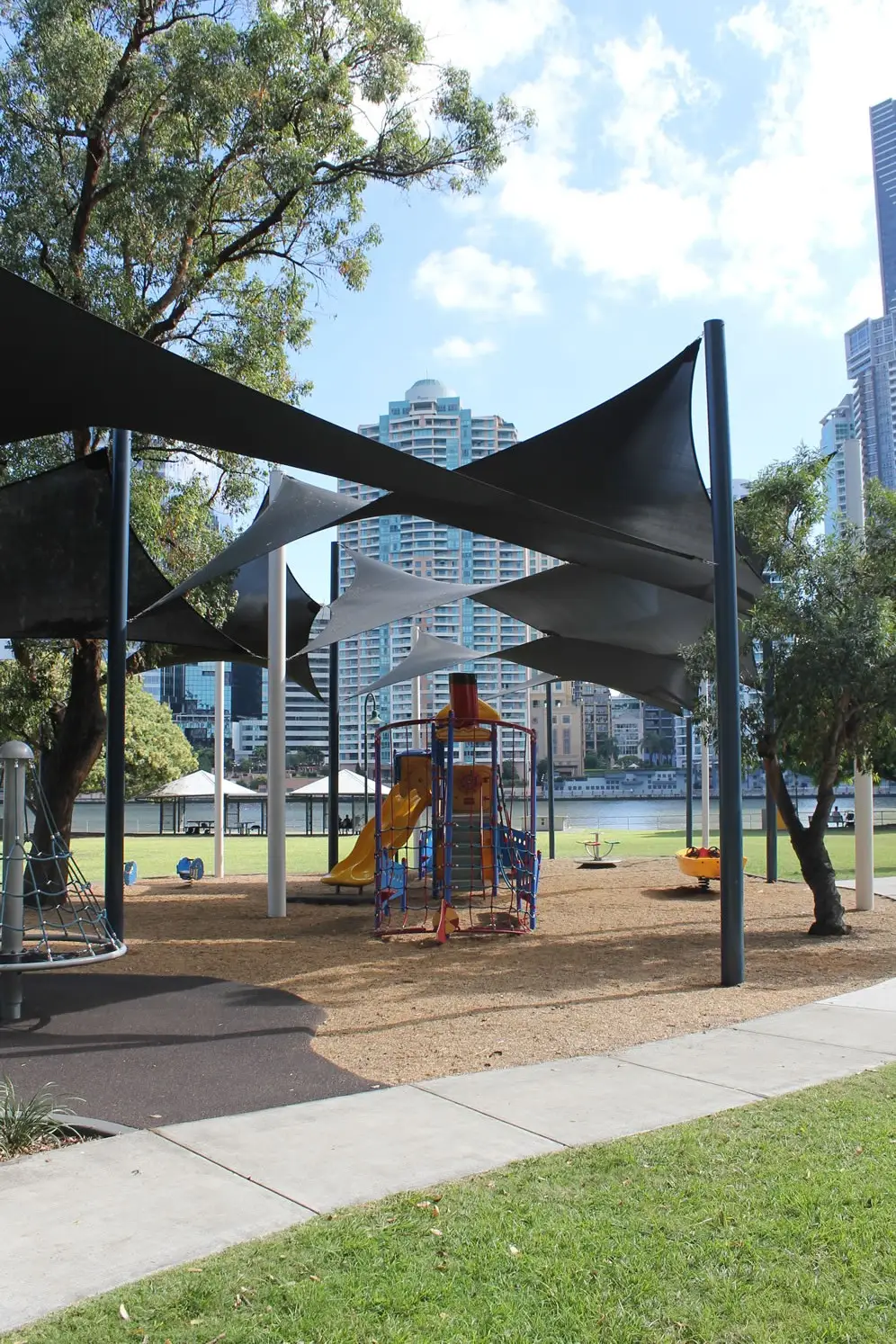 Captain Burke Park in Kangaroo Point is a high-profile park for Brisbane City Council given its proximity to both the CBD and the Story Bridge. It hosts numerous events during the year, from weddings to fireworks displays, however, the playground equipment was void of shade. Brisbane City Council approached Advanced Shade Systems to design and install a new shade solution over this playground and immediate surrounds