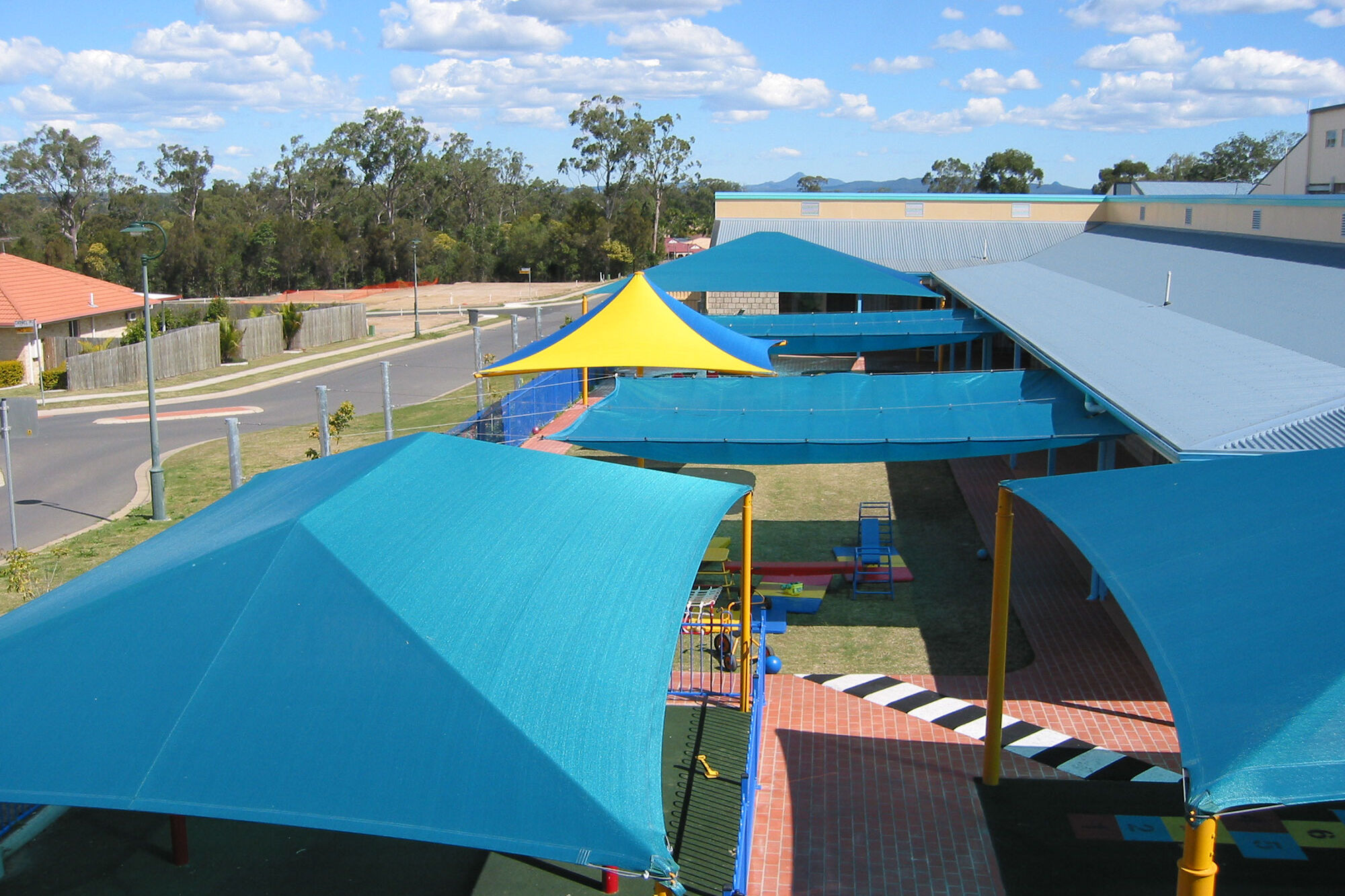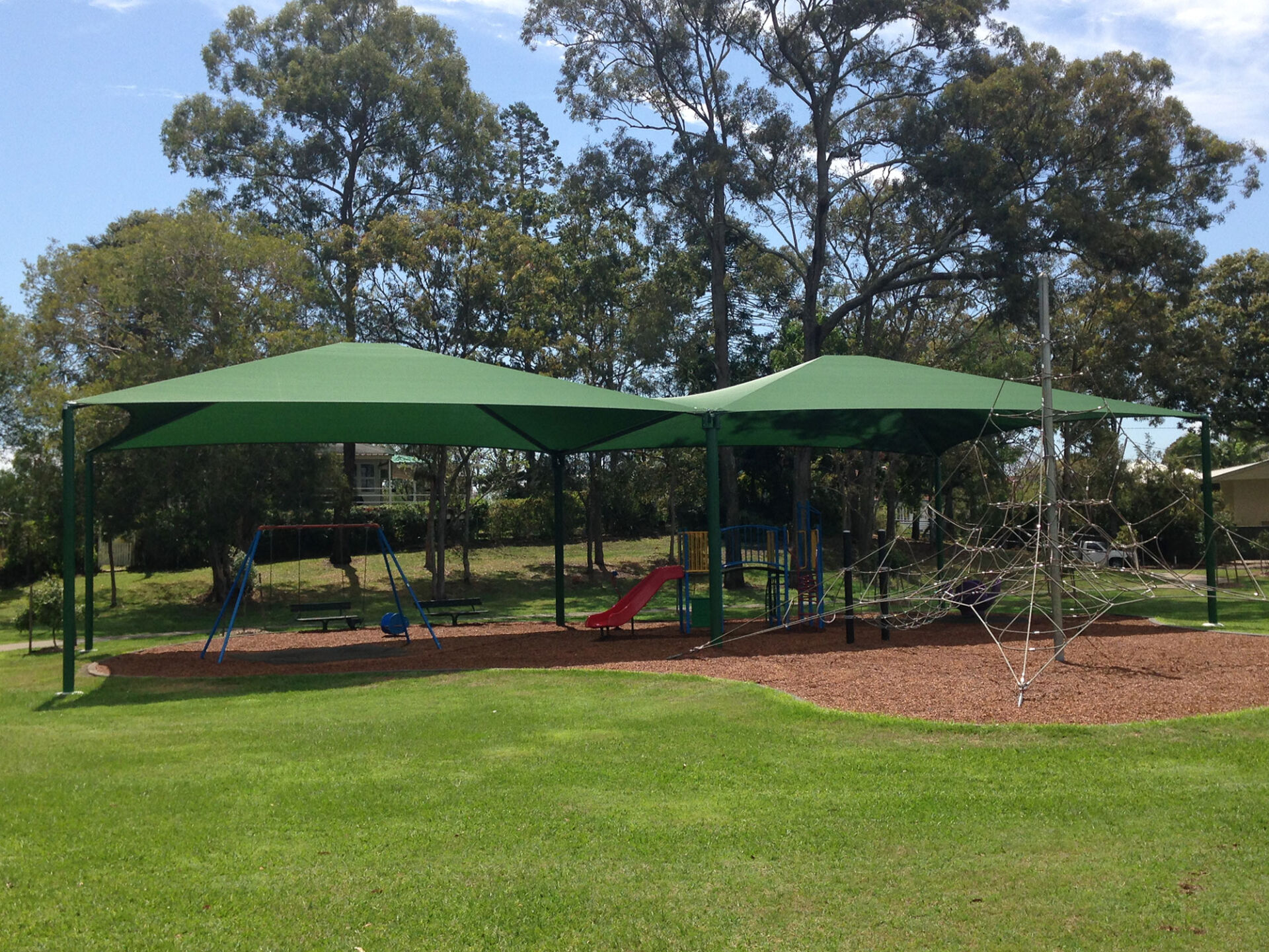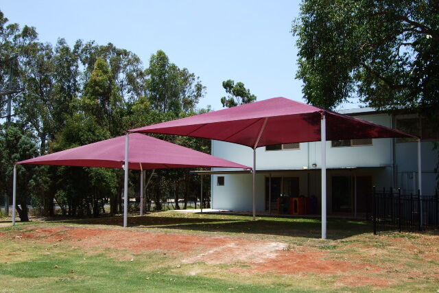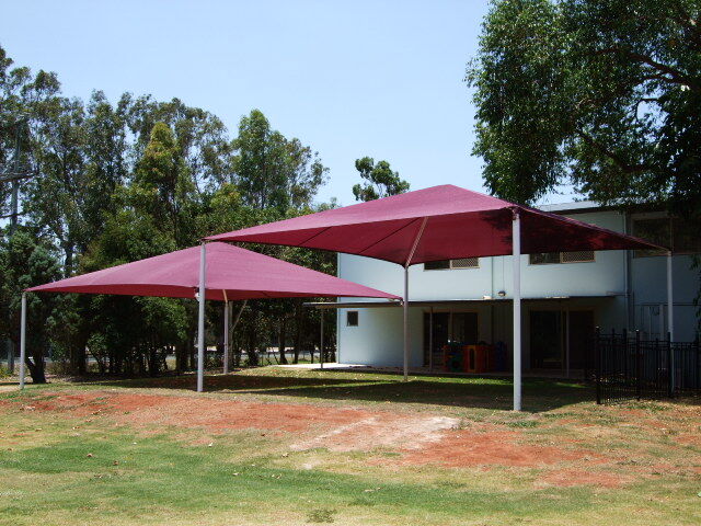 Shade structures offer excellent shade coverage throughout the day as all the outer edges of the fabric are the lowest points of the structure. Using a tent-like roof design we are able to create shaded, open outdoor areas which are well protected from the sun.