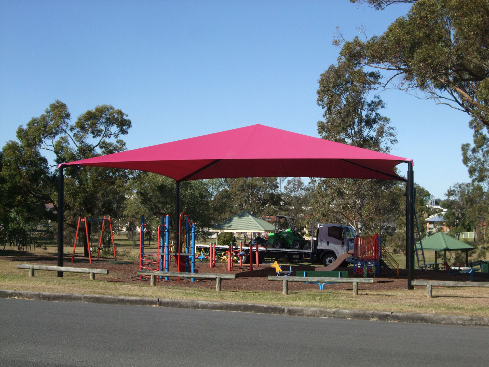Additionally, shade structures are a very cost effective option as the steel requirements are typically smaller than shade sails.