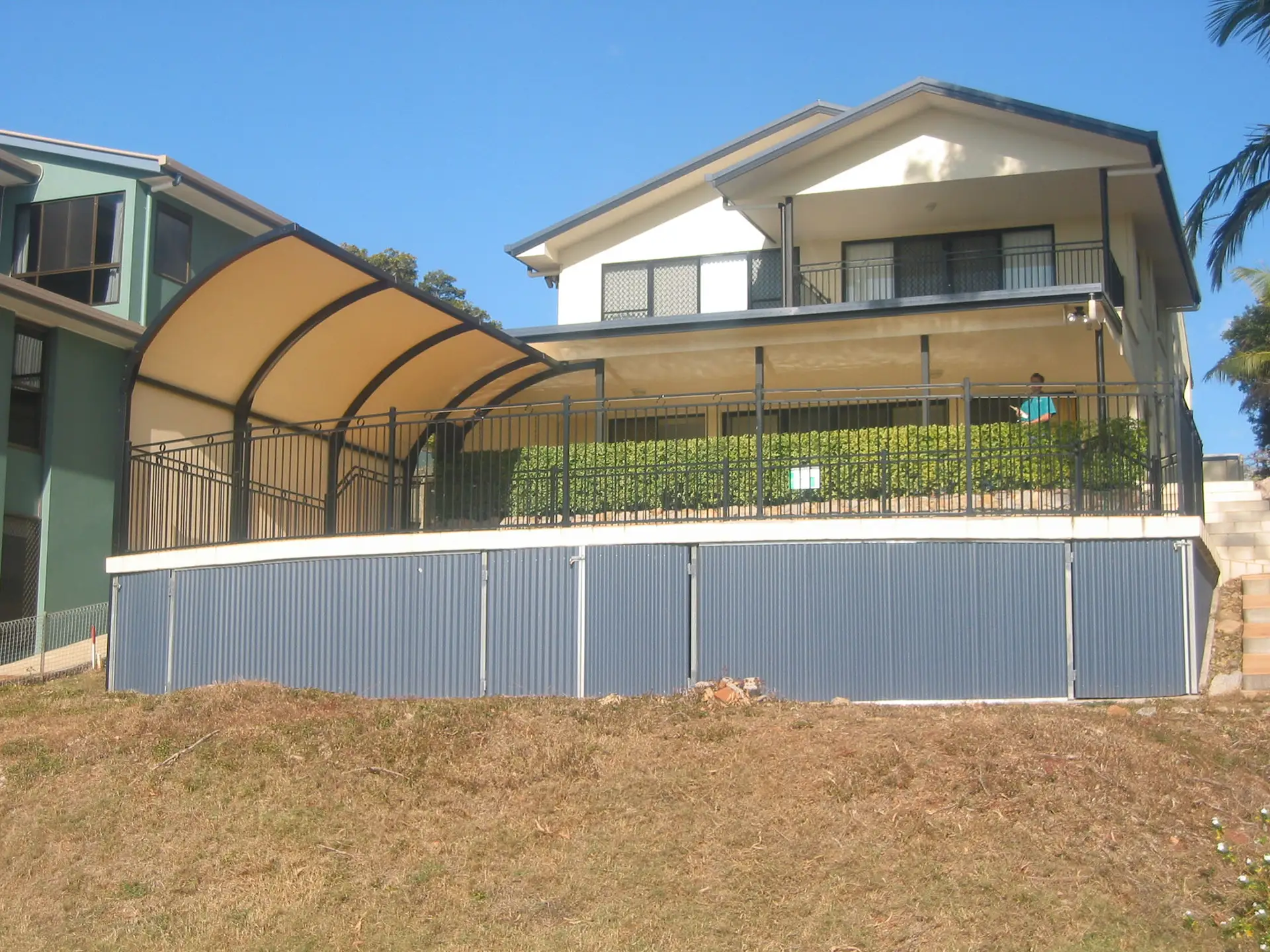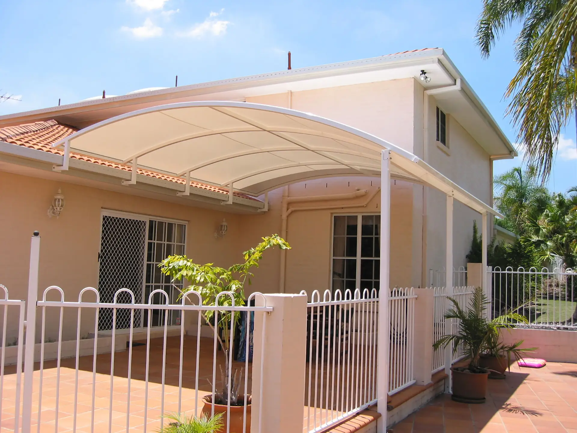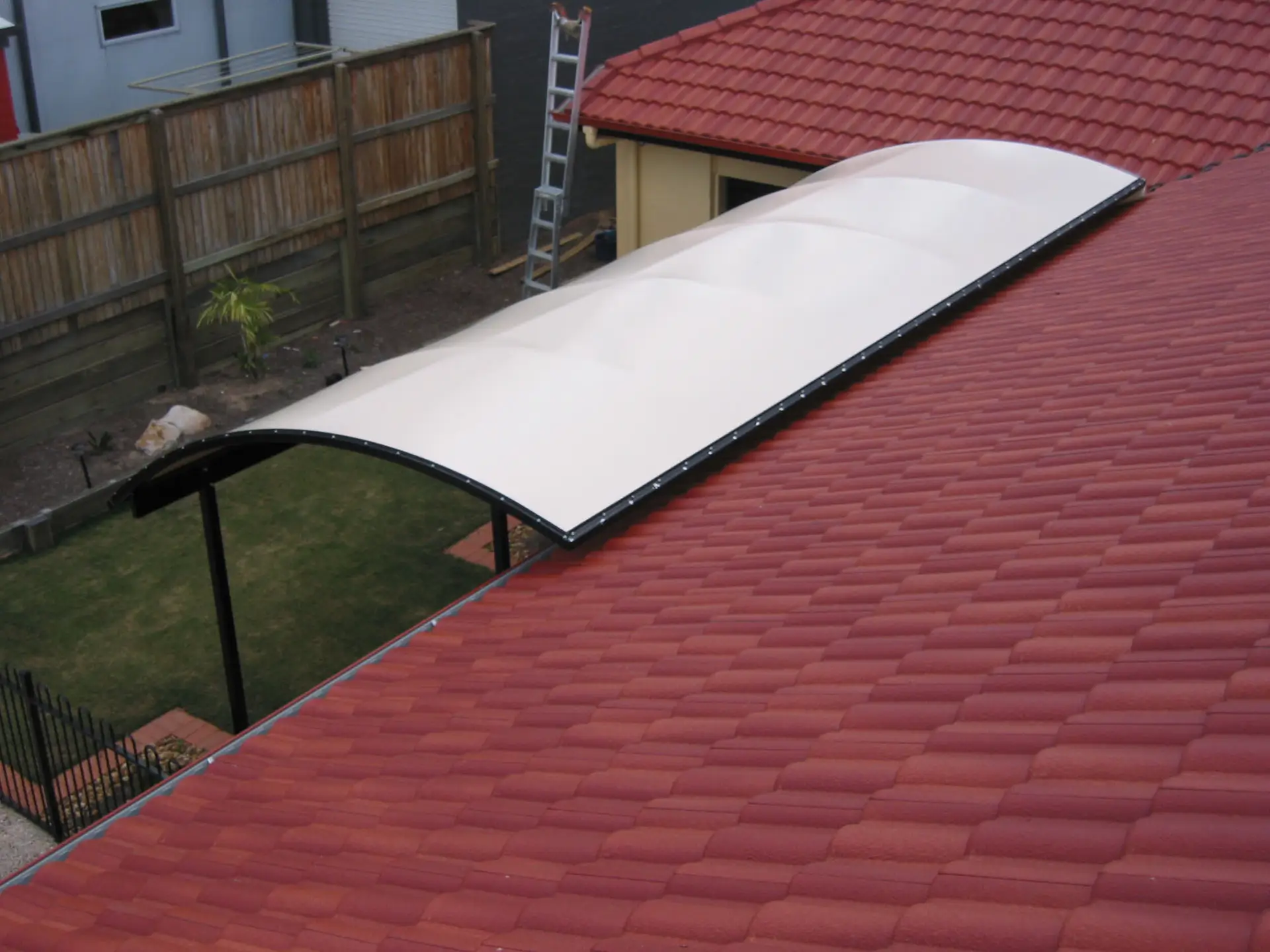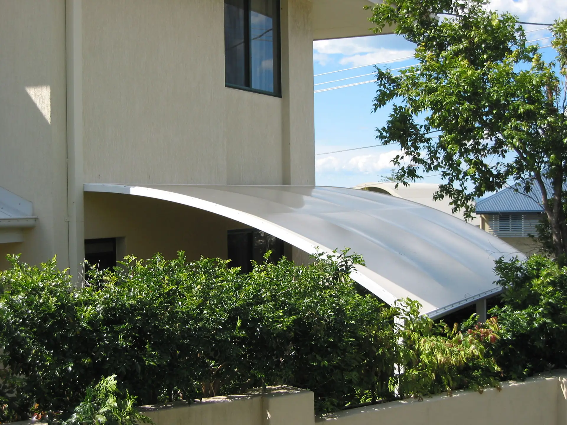 The vinyl fabric top is supported by a barrel vault roof system, which creates highly effective water and debris runoff system. Natural light passes through the fabric during daylight hours, reducing the need for additional lighting.