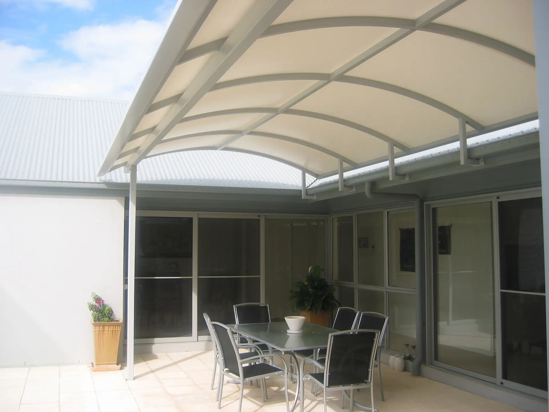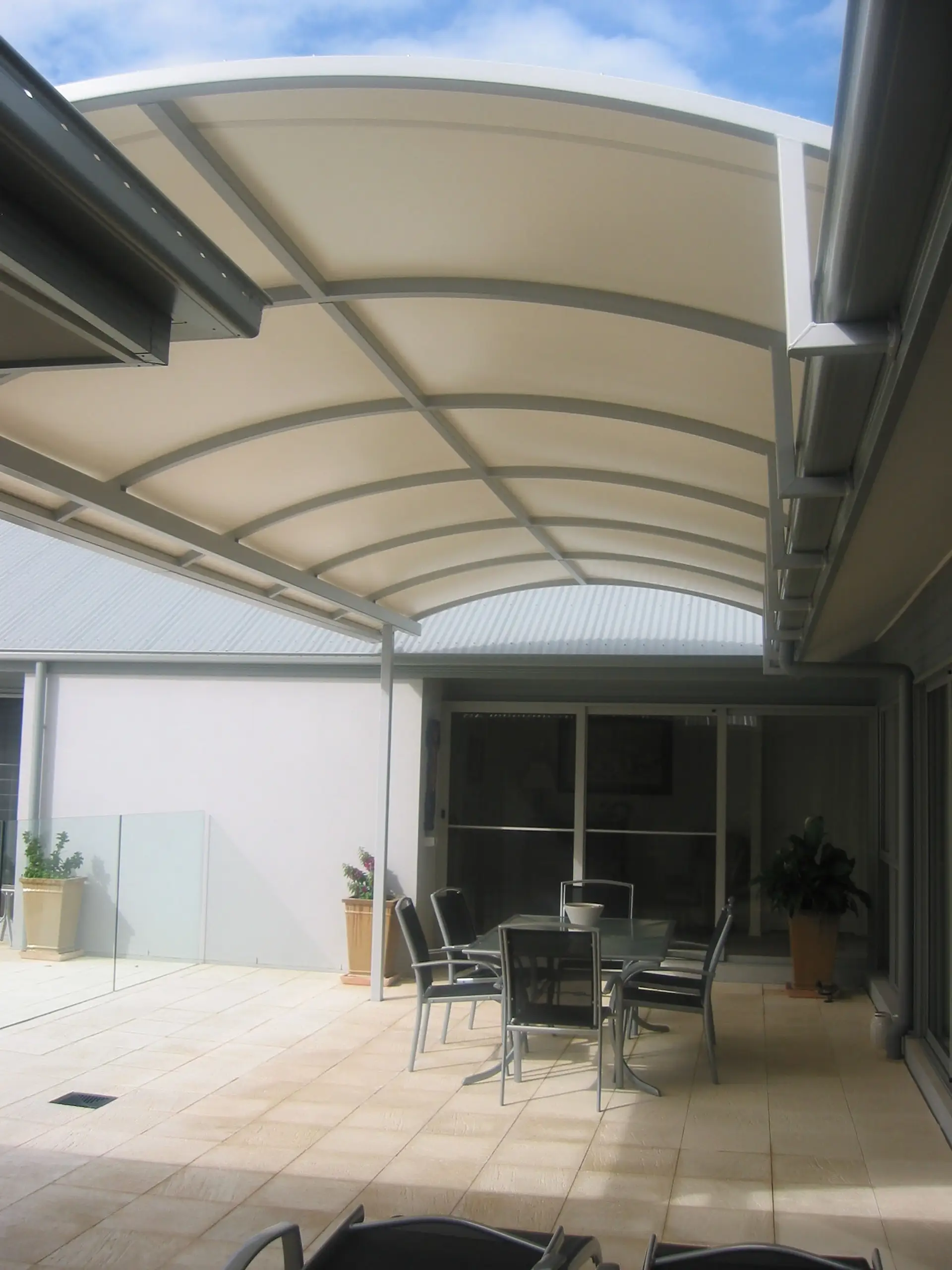 Our Dellor Membrane structures (also known as barrel vault structures) are specifically designed to provide sheltered outdoor spaces for settings such as shopping centres, alfresco dining and outdoor seating areas.